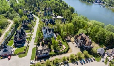 Each residence is a unique architectural work of art. The design draws inspiration from Empire, Chalet, Neoclassical, and European estate styles, creating a refined and cohesive appearance throughout the settlement. Spacious houses feature columns, panoramic windows, terraces, and decorative moldings that merge aesthetics with practicality, reflecting the status and taste of their owners.