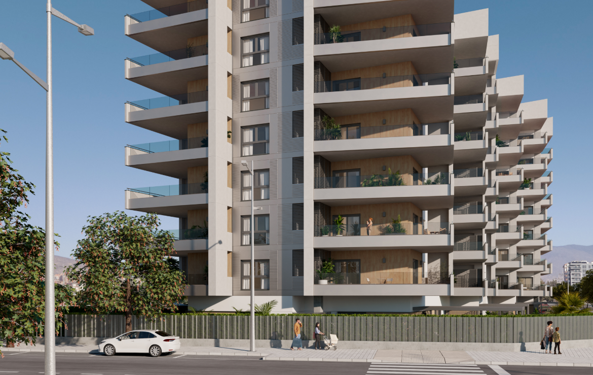 Eversun Vega Phase 1 is the first stage of a large-scale residential development located in La Vega de Acá, one of the most dynamic and prestigious districts of Almería. The complex sits at the intersection of Avenida Antonio Muñoz Zamora and Calle Árbol del Amor, in an area that seamlessly blends modern urban planning, nature, and proximity to the sea.