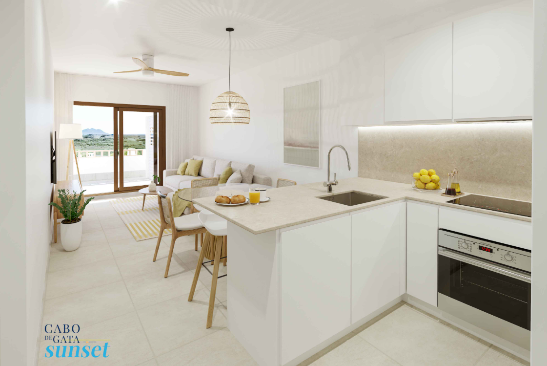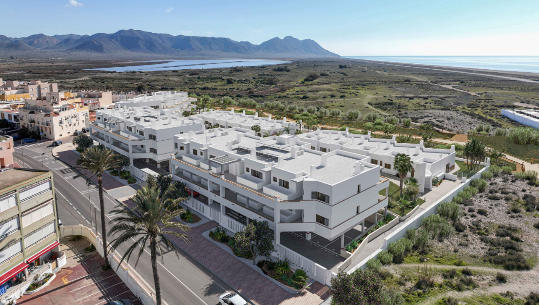 Cabo de Gata Sunset is an exclusive residential development located in the heart of the village of Cabo de Gata, right at the gateway to the Cabo de Gata-Níjar Natural Park — a UNESCO Biosphere Reserve. Just meters away lies the renowned San Miguel Beach, and many units offer panoramic sea views.