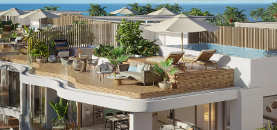 The four-story complex features two- and three-bedroom condominiums, including exclusive units with private pools. Each residence is designed to reflect your personal style while offering a sense of calm satisfaction. All owners enjoy access to rooftop pools with panoramic views and spacious lounge areas.