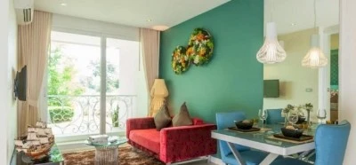 Residents can enjoy resort-style facilities: jacuzzi, landscaped gardens, cozy lounge areas, fitness center, bars, and restaurants. All apartments are fully furnished and available as one- or two-bedroom units ranging from 34.5 to 69 m², with views of gardens or pools enhancing the feeling of a permanent vacation. Security is ensured 24/7 with guards, access control, and CCTV, allowing residents to relax in peace of mind. The location adds to its advantages: close to Jomtien Beach, the night market, Bali Hai Pier, golf courses, and viewpoints. Everything needed for leisure and an active lifestyle is within walking or easy transport distance.