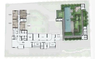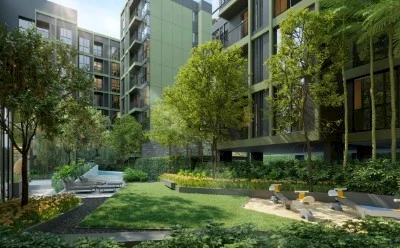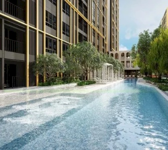 The main feature of the complex is its private green park of 8,000 m². Such a large-scale landscape project is rare for Bangkok: here you can stroll along alleys, relax in the shade of trees, and breathe fresh air while experiencing the atmosphere of an urban oasis. Nearby is Crystal Park Ekamai–Ramindra, and Thonglor, with its restaurants and cultural spaces, is only 10 minutes away. More than 40 facilities, including swimming pools, fitness centers, co-working spaces, and club areas, create an environment where the urban dynamic harmoniously blends with a resort-like lifestyle.