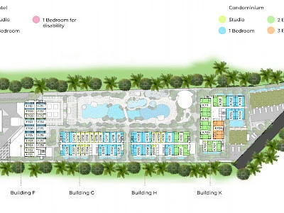 LAYAN GREEN PARK is a modern premium condo-hotel in Phuket, combining eco-friendliness, family comfort, and high quality standards. As the first EDGE-certified eco-project in Thailand, it enables up to 40% savings on utilities through energy-efficient technologies. The complex offers 4-star hotel infrastructure, including pools, gyms, restaurants, bars, and kids’ clubs, and is surrounded by scenic nature near Bang Tao Beach and Sirinat National Park. Phase one was completed in 2023, and phase two is set for 2025. The average apartment size ranges from 30 to 150 sq.m.