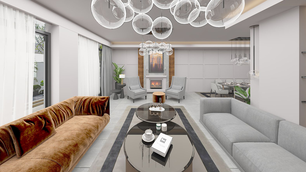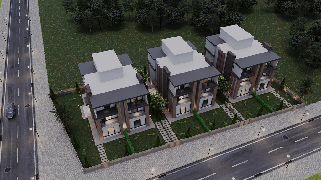 The complex consists of 16 triplex villas, offering different layouts 4+1 and 5+1 to meet the needs of small and large families alike. All houses feature high ceilings (330 cm) and functional space distribution, including spacious living rooms, comfortable bedrooms, and large kitchens.