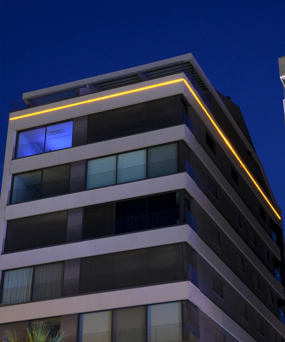 The Kar Suites Alsancak consists of two residential blocks, 4 and 6 floors high, comprising 82 residences. The architecture features a modern style with clean lines, panoramic windows, and harmonious block arrangement, ensuring comfort and privacy for all residents.