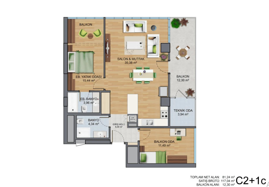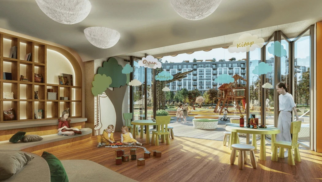 The apartments feature high-quality, modern finishes and offer a variety of layouts from 1+1 to 4+1 to suit the diverse preferences and needs of buyers. Amenities for comfortable living include a swimming pool, terrace, Pilates studio, café, children's playground, and parking.