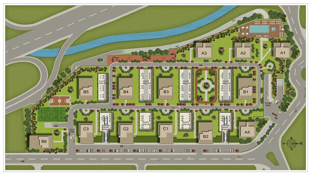 Galleria Residence is conveniently located near educational and medical institutions, as well as major shopping centers. The complex’s transportation access is excellent, with proximity to two key Istanbul highways — E-5 and E-6, and a metro station just a few minutes' walk away.