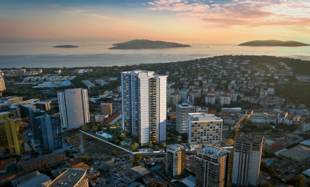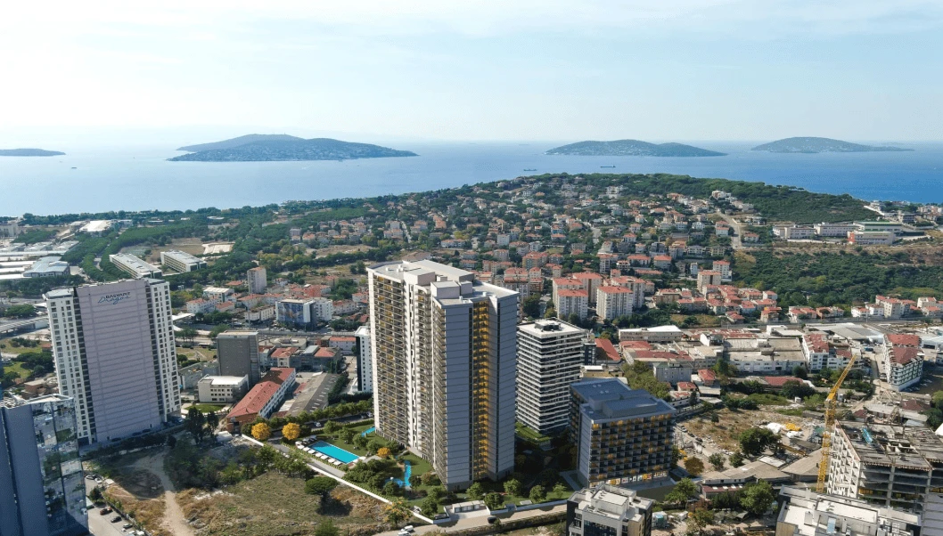 The residential complex is located in the Kartal district on the Asian side of Istanbul, just 400 meters from the sea. The project includes two towers up to 26 stories high, situated on an 8,500 m² plot. The complex offers 216 apartments of various types: 1+1, 2+1 Duplex, 3+1 Duplex, and 3+1 Deluxe. The balconies of the apartments provide stunning views of the Princes' Islands and the Marmara Sea.