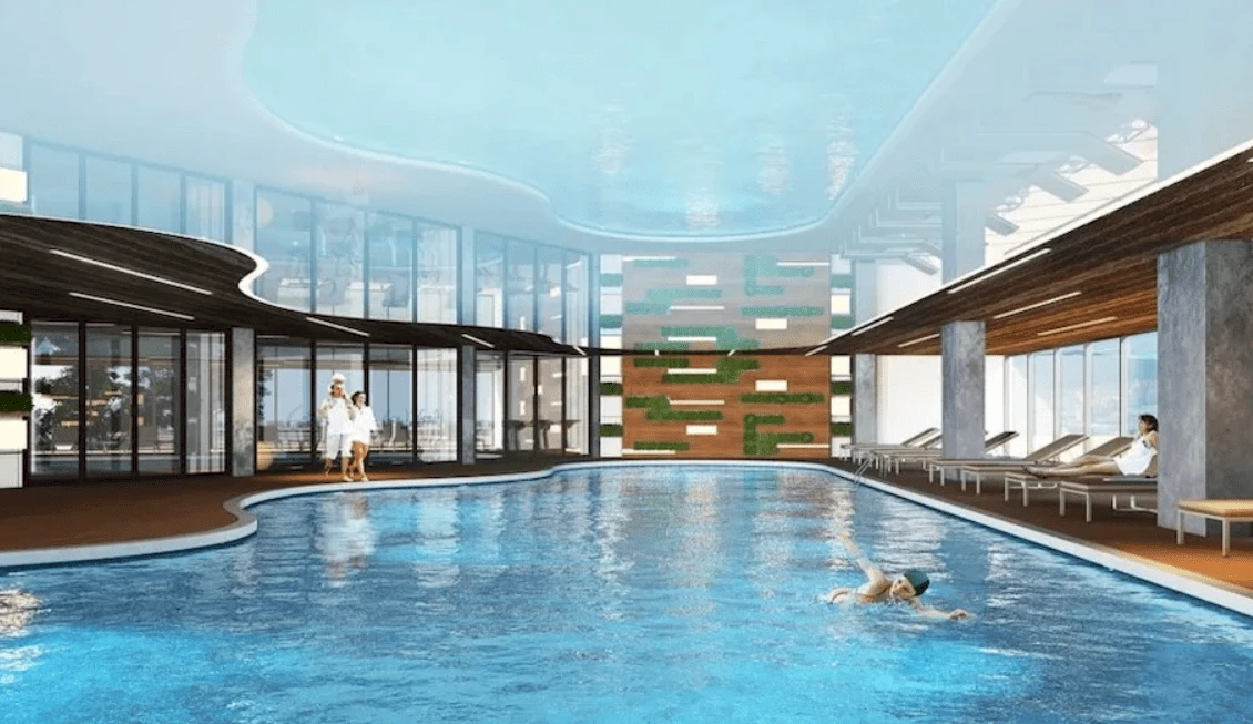 The complex offers comfortable living conditions for its residents, including a swimming pool, cafeterias, yoga studio, café, children's activity club, parking, Turkish baths, and a fitness center. The project combines the benefits of a tranquil lifestyle with well-developed infrastructure, elegant architecture, and high-quality interior design.