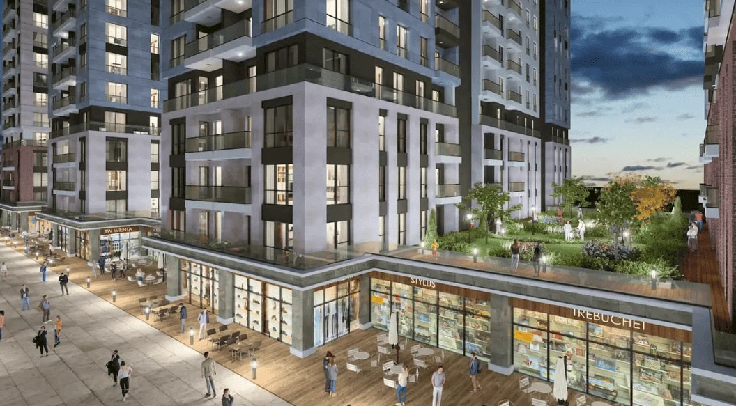The total area of the project spans 47,000 square meters and includes 17 residential buildings, each 15 stories high, comprising 738 apartments of various layouts ranging from 1+1 to 4+1. Residents enjoy a variety of amenities within the complex, such as an outdoor pool, a spa area, a fitness center, underground parking, basketball and football courts, a children's play area, extensive green spaces, and a large shopping mall covering 30,000 square meters.