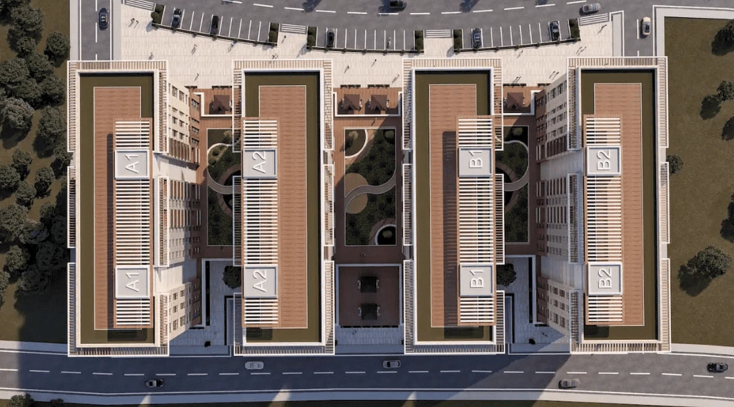 The residential complex embodies an ideal blend of space and refined design, realizing the concept of luxurious living. Apartments feature spacious kitchens, balconies, high ceilings, and large windows that fill the interiors with natural light, creating a cozy atmosphere.