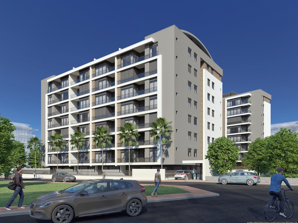 The complex is located on a 2,608 m² plot and includes two residential blocks with 54 apartments and commercial space. Situated in one of Antalya's residential areas, it provides convenient access to the city's infrastructure and transportation links.