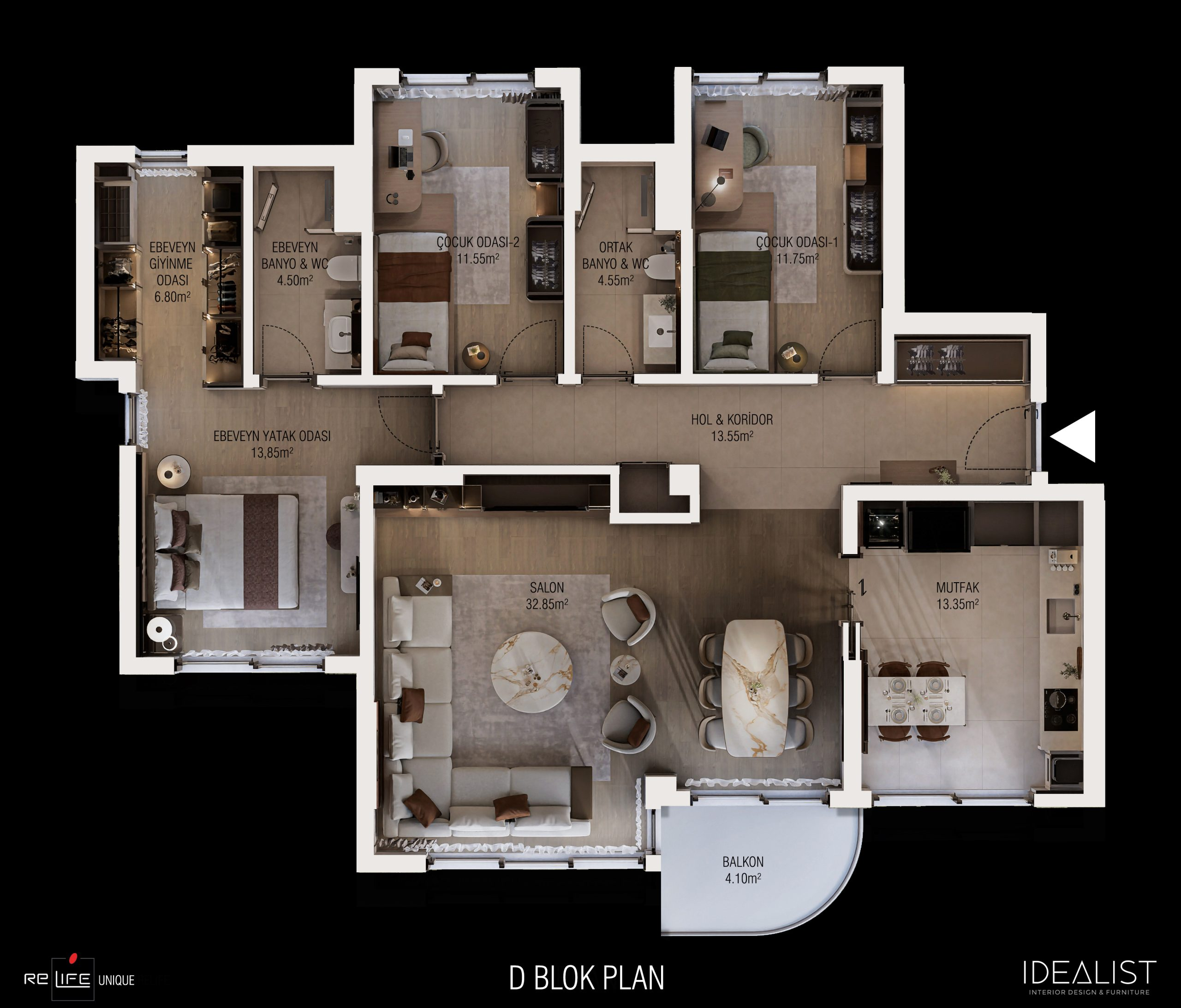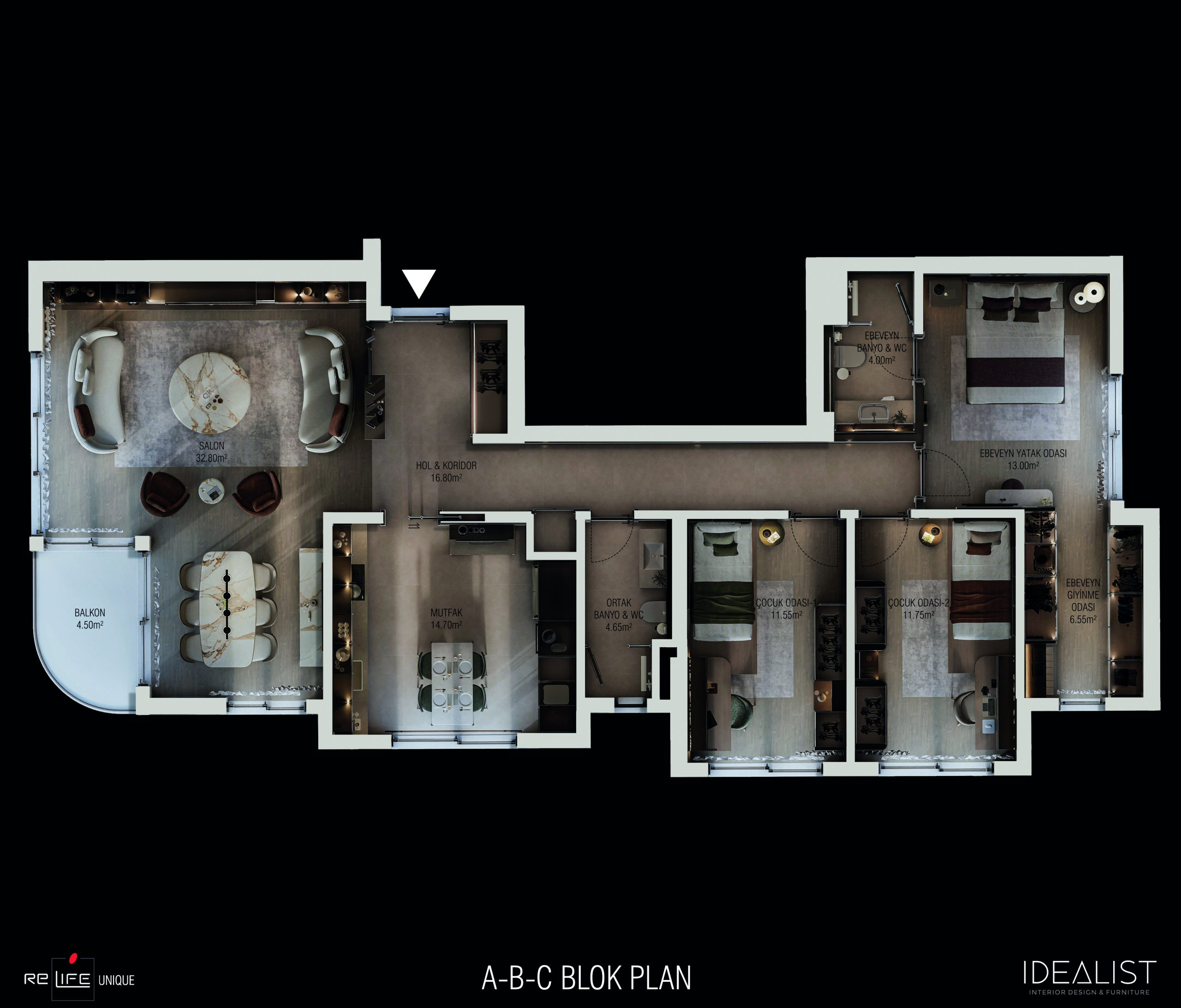 This multi-format layout makes the complex attractive not only for residential use but also for business, commercial leasing, and investment. The 3+1 apartments at RELIFE UNIQUE feature: