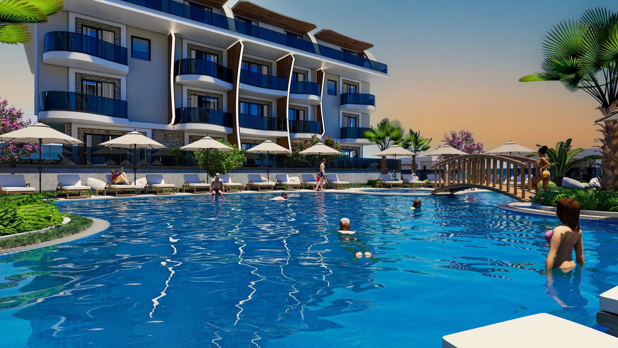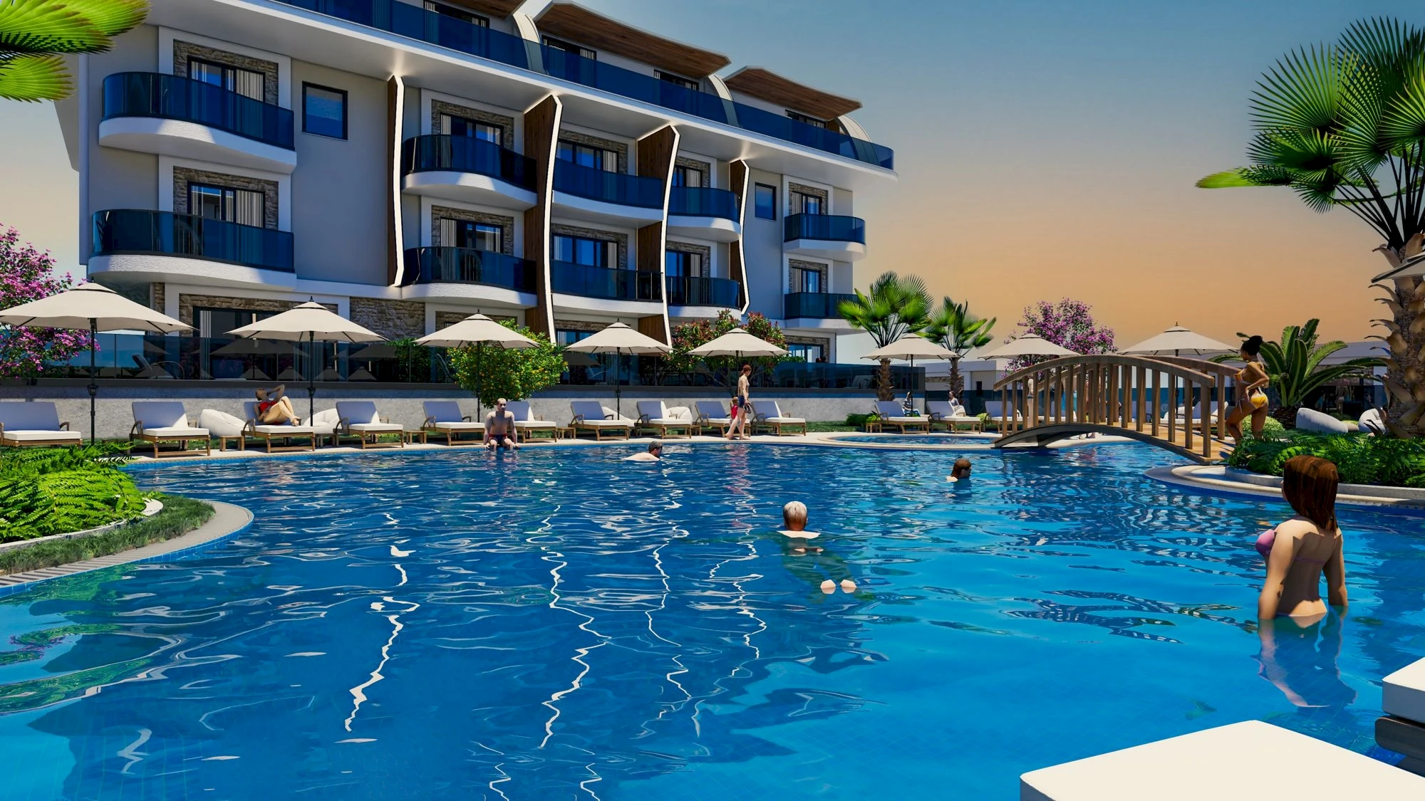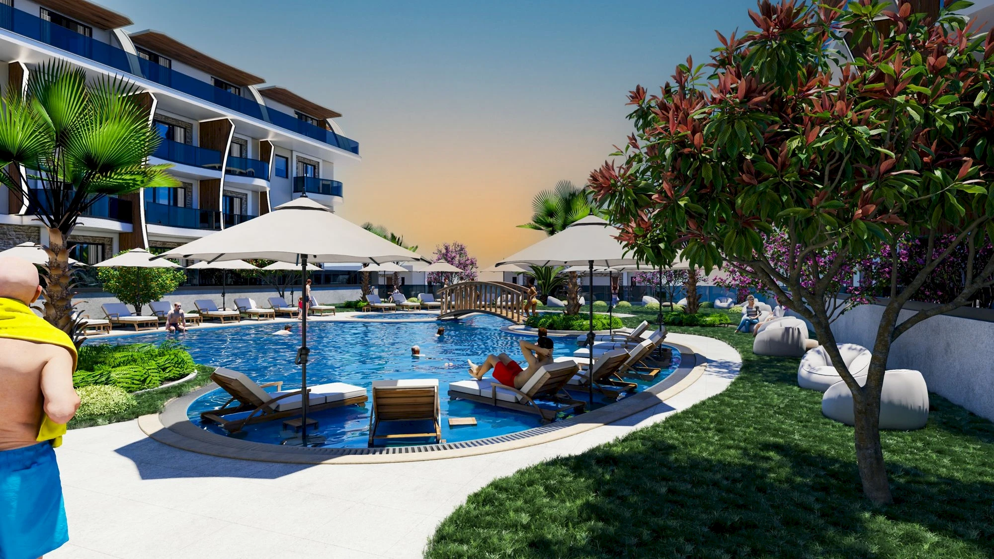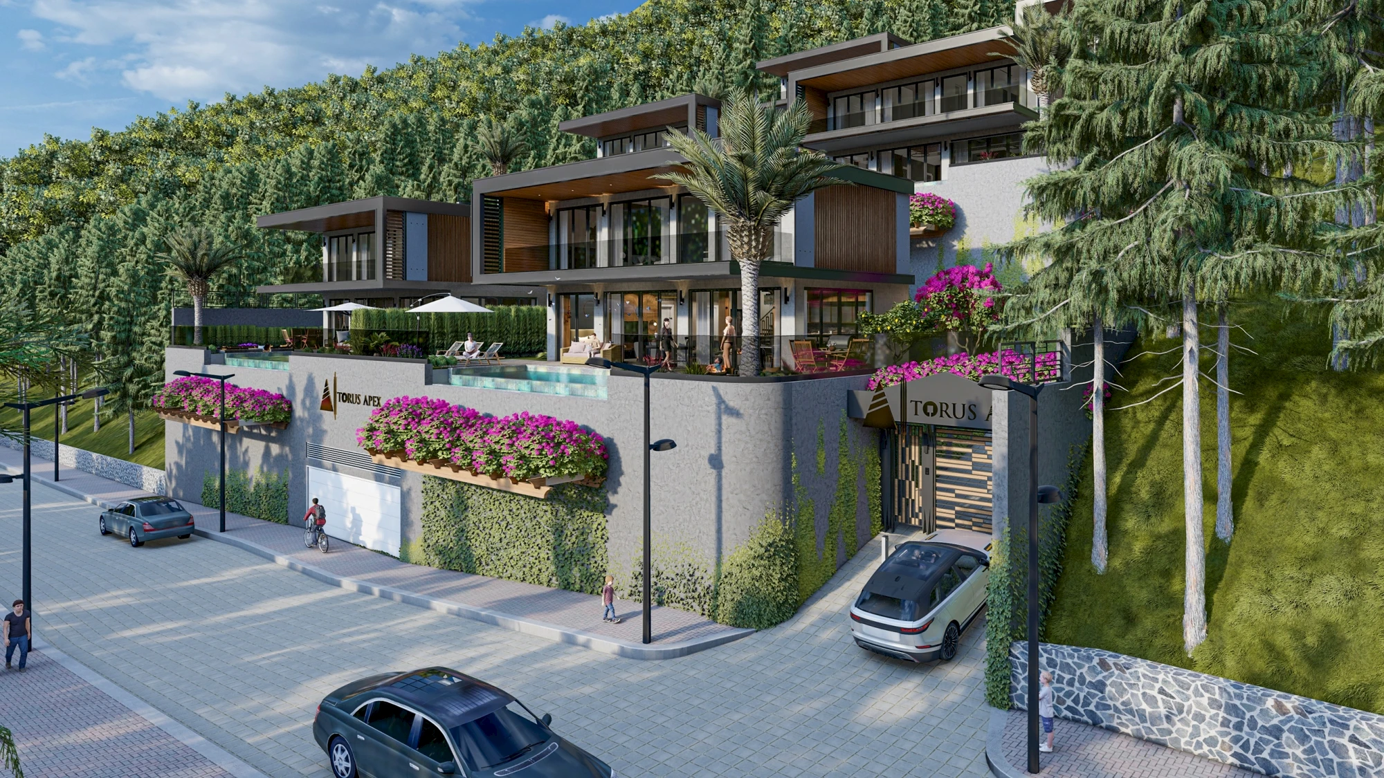 Show moreTorus Silence — a modern apartment complex in the Kargicak area (Alanya), located on a quiet hillside. The complex consists of three four-story buildings connected by shared open spaces and offers amenities for a comfortable stay: outdoor and indoor pools, a tennis court, a children’s playground, landscaped gardens with walking paths, as well as a fitness center, Turkish bath, sauna, and steam room.