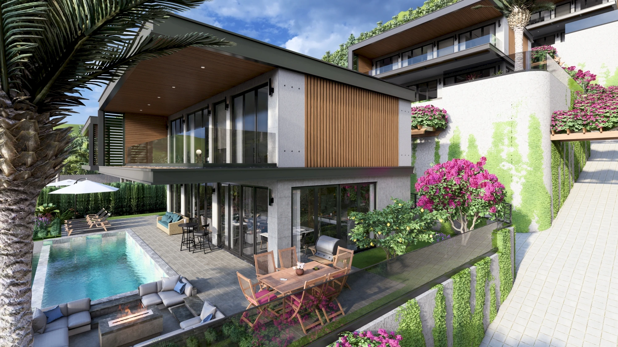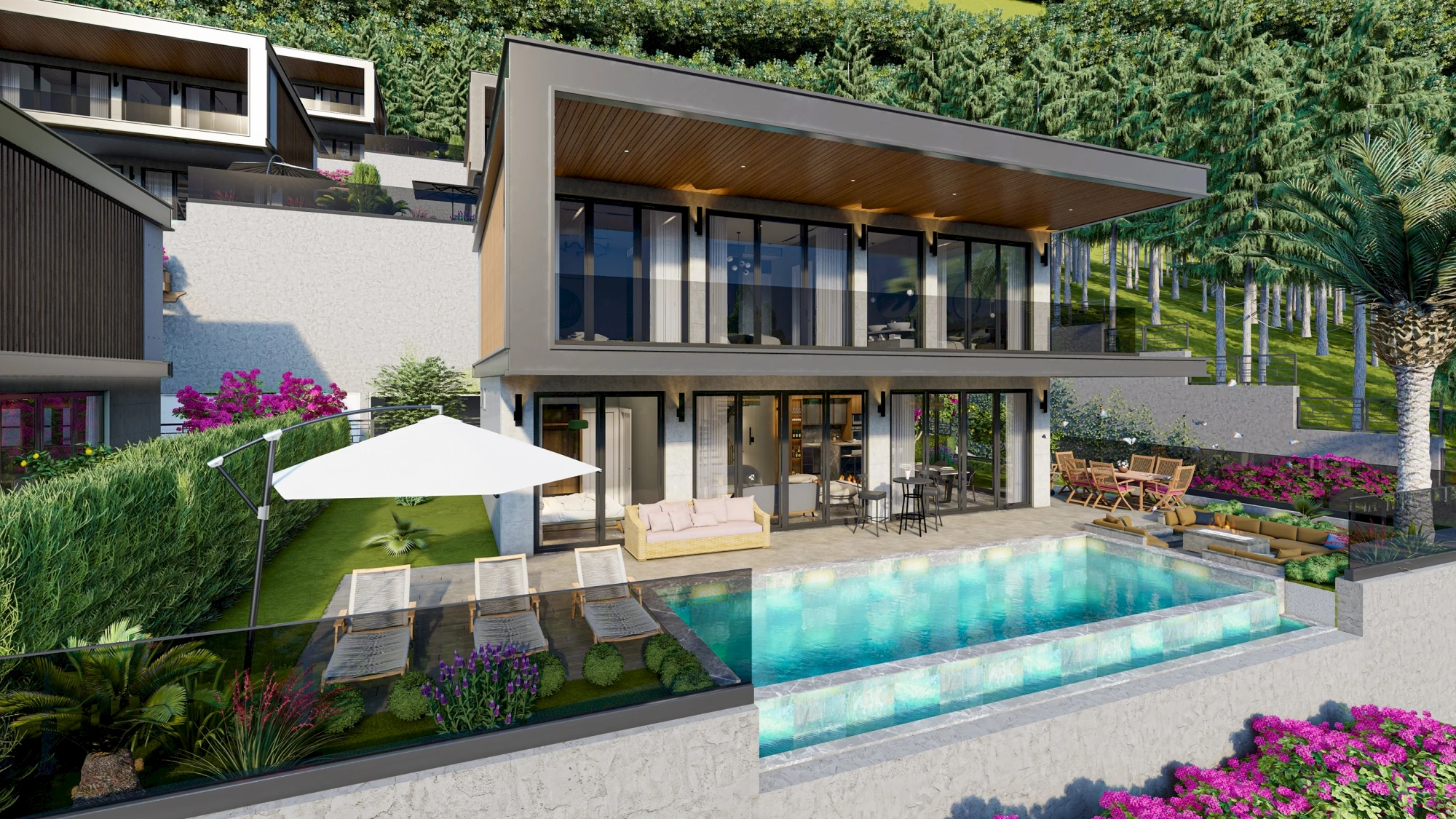 Each villa, 305 m² in size (8+1), combines modern style, space, and comfort: