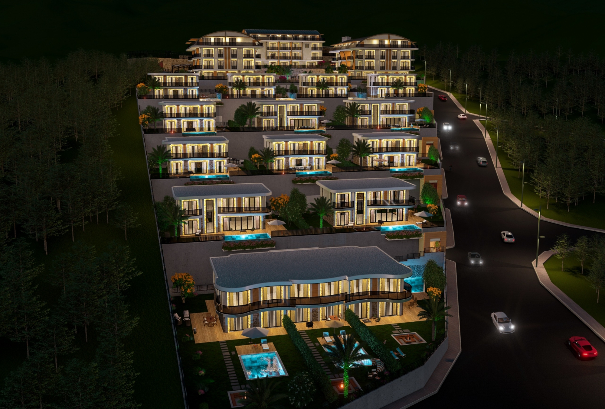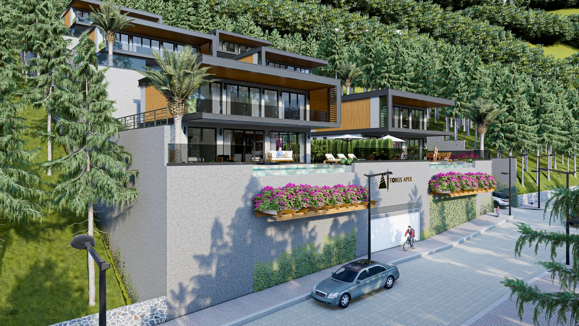 On a picturesque plot of 2,480 m², an exclusive project will take shape — 6 three-story villas with a total area of approximately 5,115 m². The villas will be nestled among pine forests, with panoramic views of Alanya, the castle, and the turquoise sea from the windows.