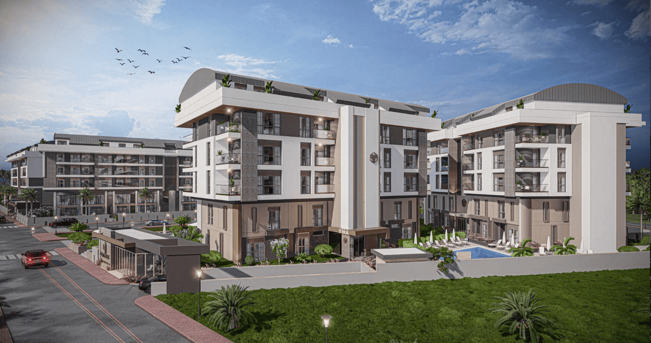 The complex is located in the central part of Alanya, within walking distance to beaches, shops, restaurants, schools, and healthcare facilities. This location allows residents to enjoy all the benefits of city life while remaining close to the sea.
