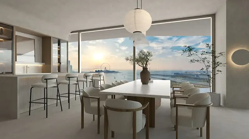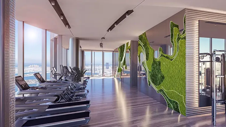 Residents enjoy access to three levels of leisure & wellness on the 8th, 47th, and 70th floors: infinity pools (including a unique 270° pool and an indoor tranquility pool), fitness studios, yoga rooms, a spa, and padel tennis courts. For families and socializing, the tower offers a rooftop café, children’s areas, a library, lounge spaces, and event halls.