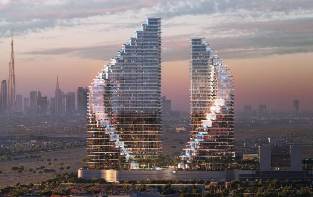 The unique design with parallel towers playing with lines and light creates exceptional investment appeal. Project completion is scheduled for the second quarter of 2027.