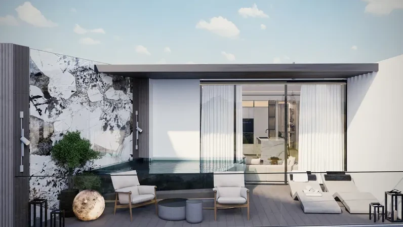 The project offers an exclusive collection of premium apartments: studios, one-, and two-bedroom units with contemporary layouts, totaling 332 meticulously designed residences. The tower comprises 20 residential floors, two basement levels, three parking tiers, and a developed rooftop area.