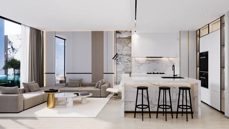 Binghatti Apex embodies the philosophy of reaching the pinnacle of both visual aesthetics and functional excellence. This architectural marvel defines the city's skyline with sleek lines and avant-garde structural solutions. Expansive glazing floods interiors with natural light, while thoughtful landscaping seamlessly integrates the space with its surroundings, blurring the boundaries between indoor and outdoor living.