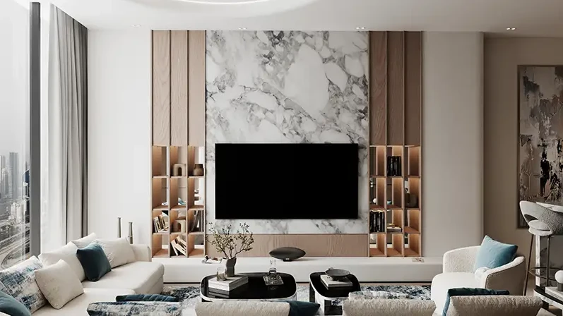 The complex includes 776 luxury apartments: studios, one-, two-, and three-bedroom units with thoughtful layouts catering to different needs and family sizes. The tower consists of 2 basement levels, 4 parking floors, 58 residential floors, 3 technical floors, and a rooftop area.