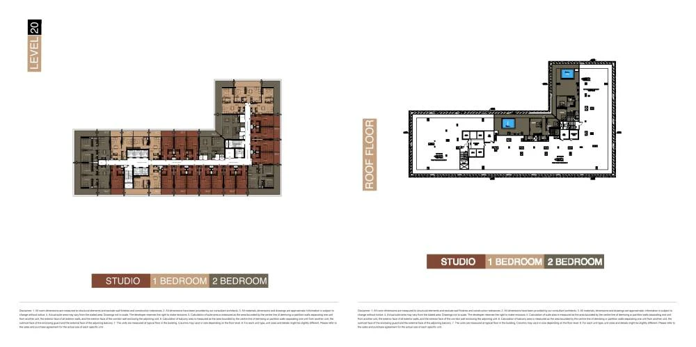 The complex features luxury apartments: studios, one-, and two-bedroom units with modern layouts ranging from 39 to 111 square meters. The 25-story tower comprises 3 basement levels, 3 podium levels, 20 residential floors, and a rooftop area.