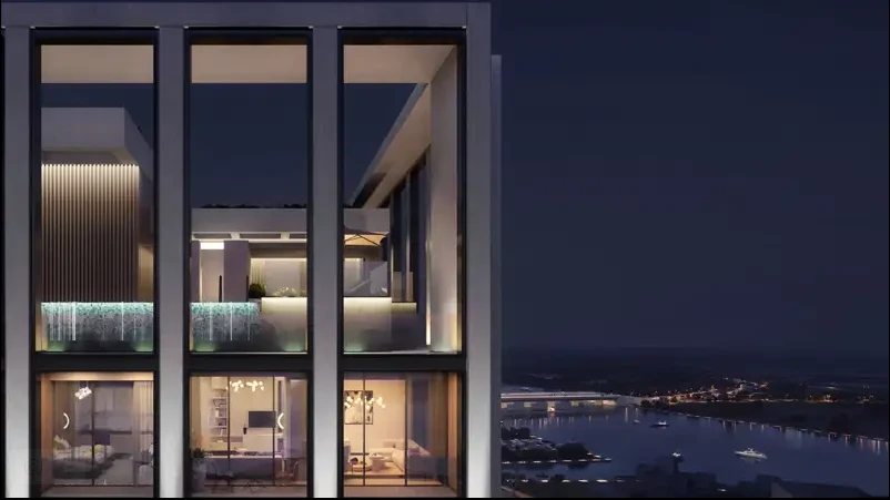 This 65-story skyscraper, standing 341 meters tall, offers exquisite residences with uninterrupted panoramic views of the Burj Khalifa and the famous Dubai Fountain. The project includes two-to-four bedroom apartments ranging from 147 to 352 square meters, spacious four-to-five bedroom penthouses from 340 to 667 square meters, as well as exclusive duplex and triplex penthouses of up to 1682 square meters.