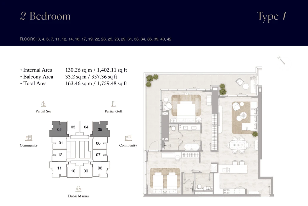 Residents enjoy easy access to key Dubai landmarks: Nakheel Mall in 10 minutes, Dubai Marina and Dubai Harbour in 15 minutes, Mall of the Emirates in 20 minutes, and Dubai International Airport in 30 minutes. Vitalia offers a perfect blend of luxury and eco-conscious living on the Palm Jumeirah waterfront.