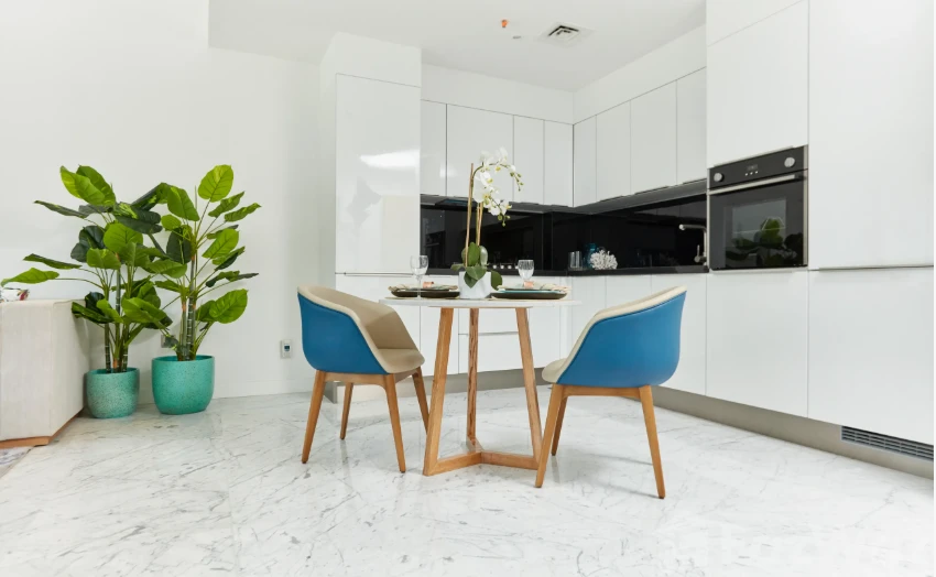 The interiors are made with quality materials: the floors are finished with marble and Italian ceramic tiles, bathrooms are equipped with designer sanitary ware and faucets Bagno, and kitchens are equipped with modern appliances Gorenje from the company Porcelanosa. In addition, each apartment is equipped with an intelligent home automation system Control 4, which provides maximum convenience and comfort for the residents. To increase soundproofing and protection from heat, the developer has applied special Alico glazing.