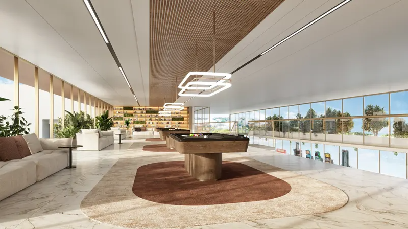 The development offers access to a wide range of world-class amenities, including a library for peaceful reading, private lounges and a banquet hall for hosting events, a health club and fitness center, as well as entertainment areas with arcade games, billiards, table tennis, and a chess room.