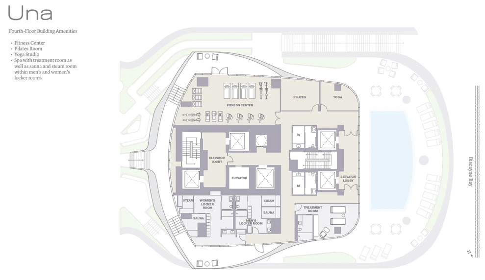 Una Residences features 135 spacious condominiums aimed at the ultra-luxury market segment. Residential units range from two- to five-bedroom apartments, featuring generous space, high ceilings, and views of the ocean and downtown Miami.