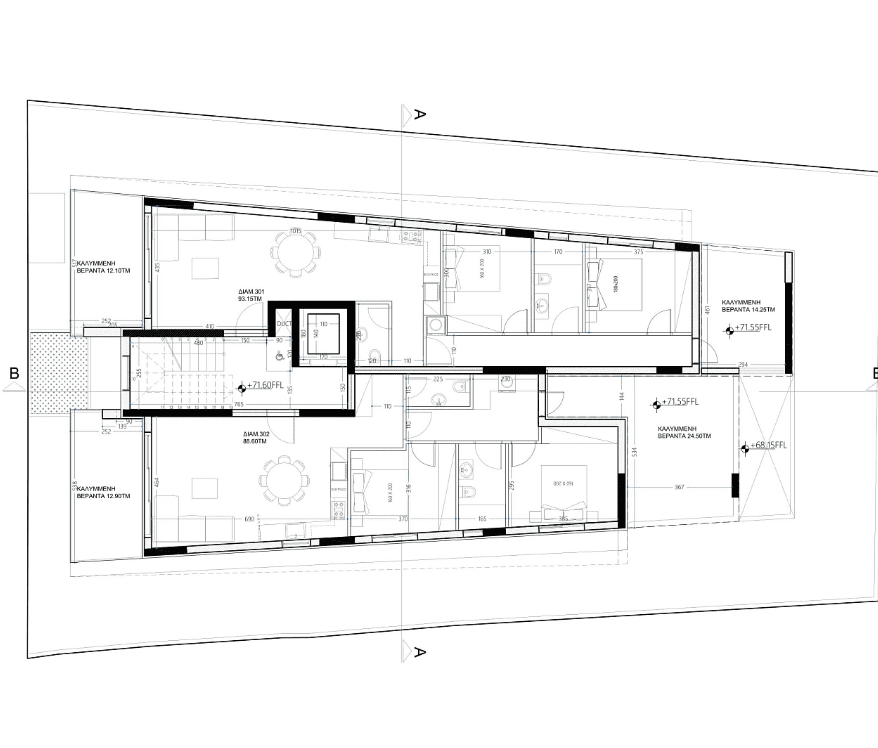 Apartment 404 (Block B): 4 bedrooms, 146 m² + 230 m² total area, 3 parkings.