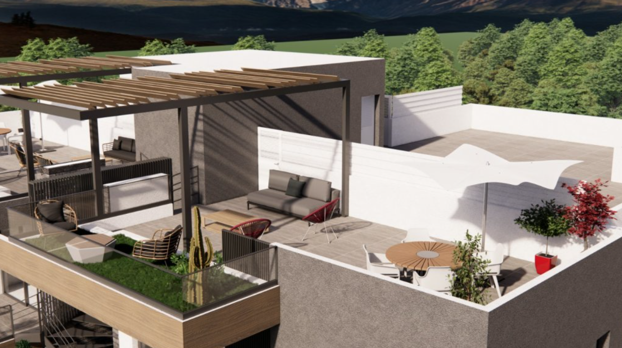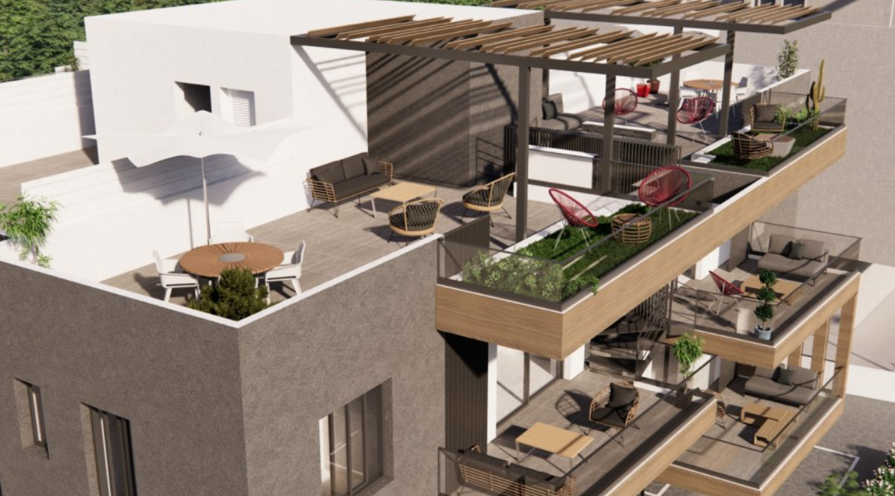 El edificio de dos plantas cuenta con ocho apartamentos diseñados cuidadosamente, cuatro por planta, con opciones de una, dos y tres habitaciones. Las viviendas del segundo piso disponen de su propio jardín privado en la azotea, brindando una experiencia similar a la de una casa independiente. La arquitectura contemporánea y el diseño innovador convierten a ORAMA ARTEMIS en una opción ideal para quienes buscan un estilo de vida cómodo y moderno.