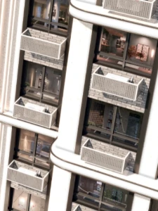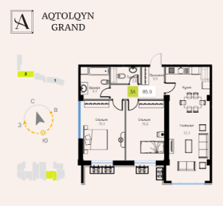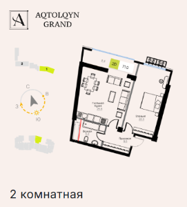 Se proporcionan amplios patios y terrazas privadas para los residentes, creando una atmósfera de confort y privacidad. Aqtolqyn Grand es una combinación de tecnología, seguridad y un estilo de vida elegante.