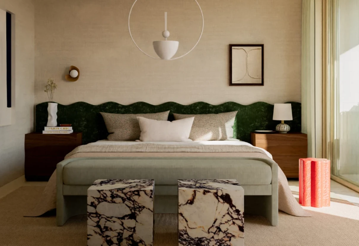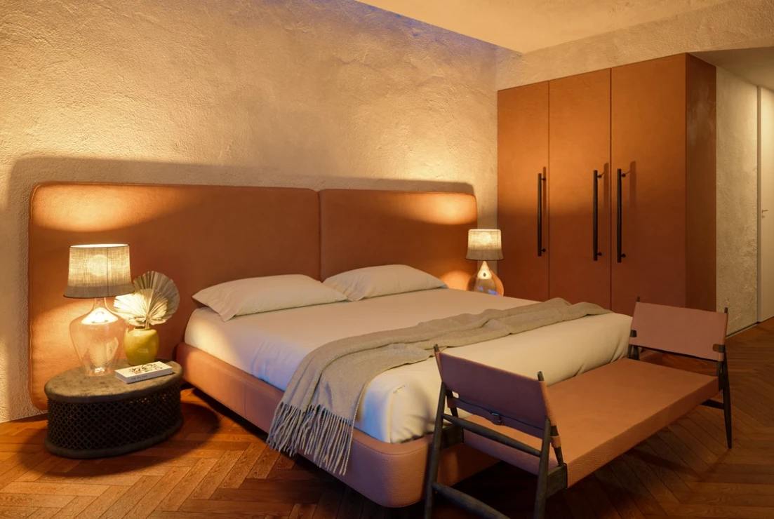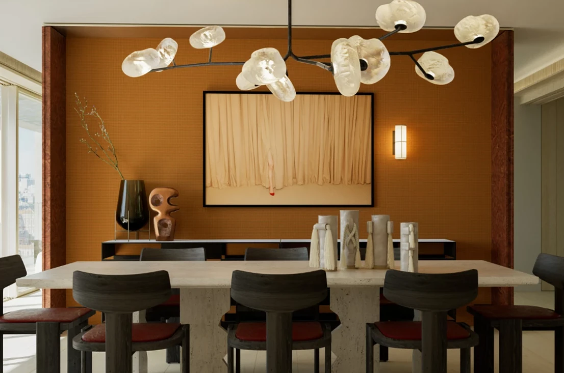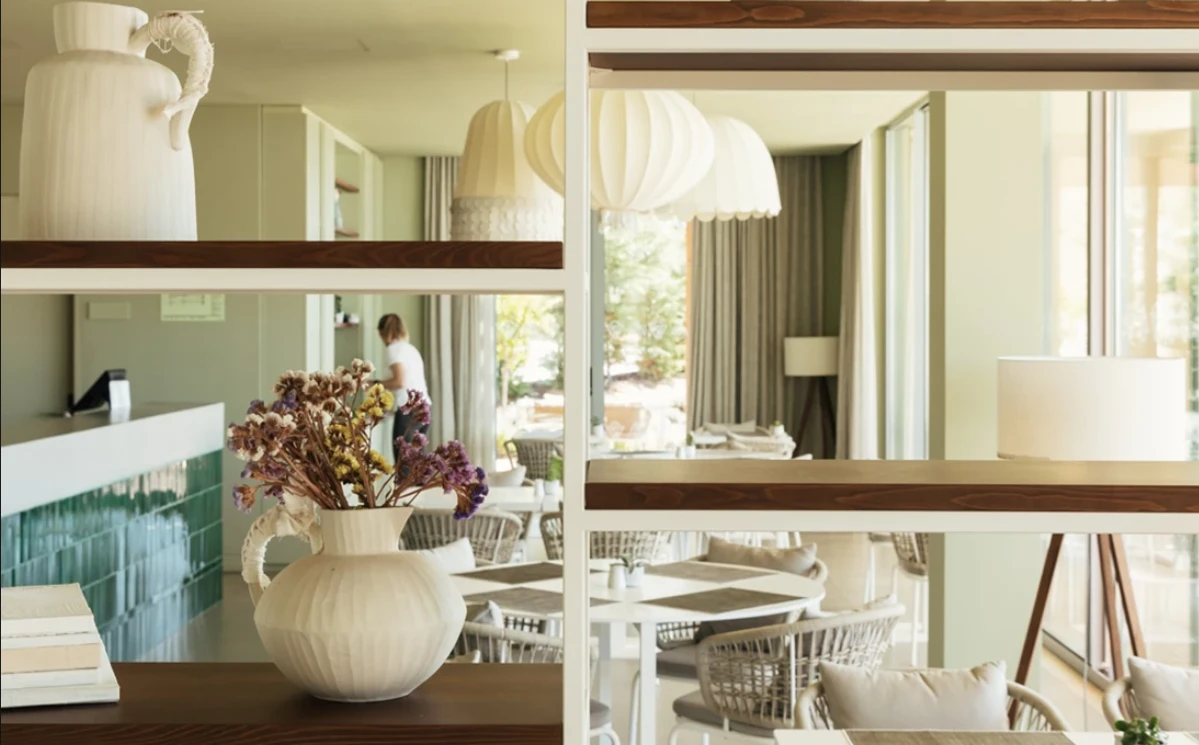 Los interiores, creados por Quiet Studios, destacan por su elegancia atemporal: tonos neutros, materiales nobles —madera, mármol y vidrio— y un mobiliario inspirado en el minimalismo italiano.