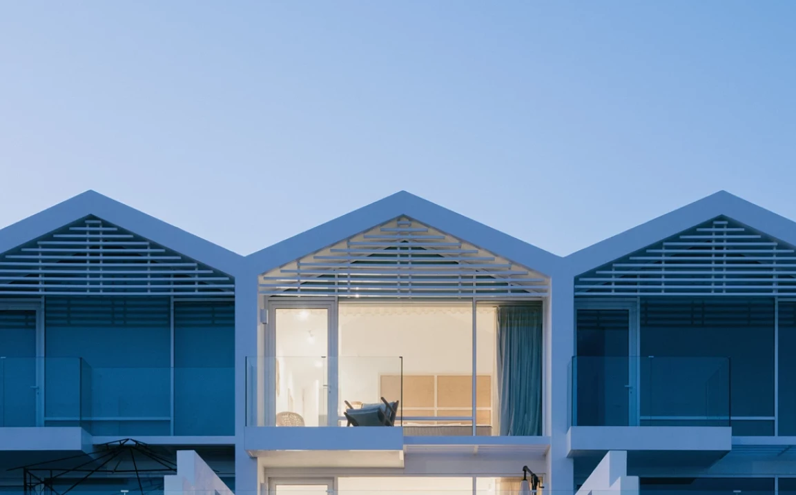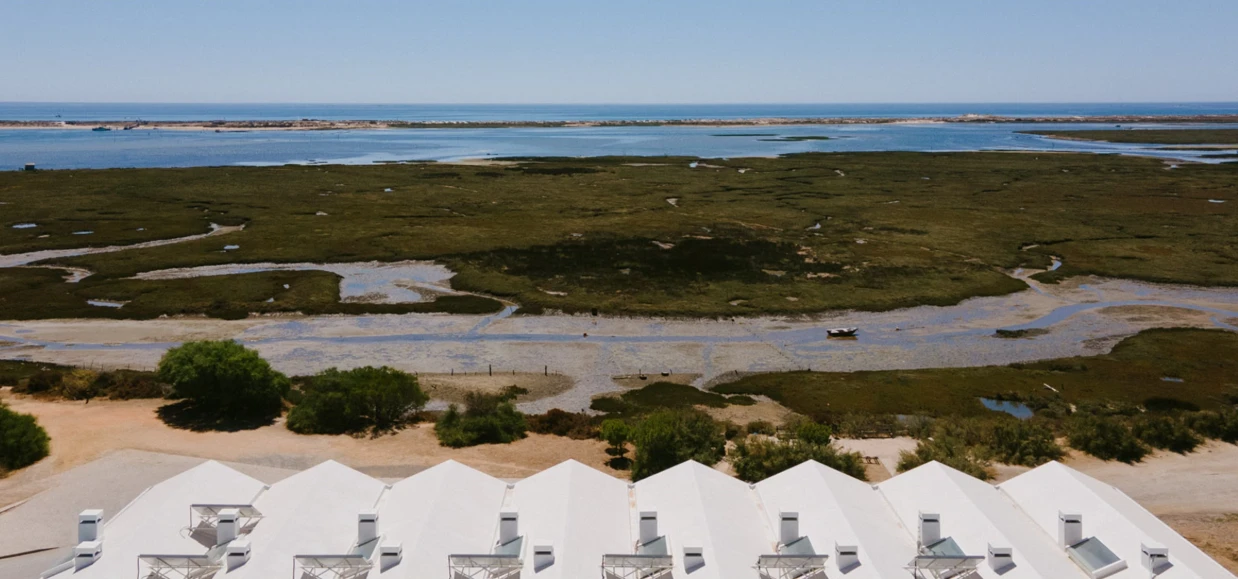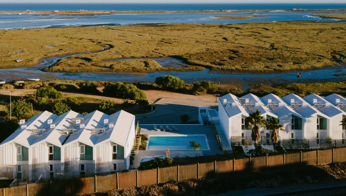 Casas de Sal es un exclusivo conjunto residencial ubicado en Fuseta, un típico pueblo pesquero del Algarve oriental, a orillas del parque natural protegido de la Ría Formosa. El proyecto se inspira en el patrimonio local —especialmente en las salinas tradicionales, cuyas icónicas pirámides blancas de sal han definido la identidad arquitectónica de todo el complejo.