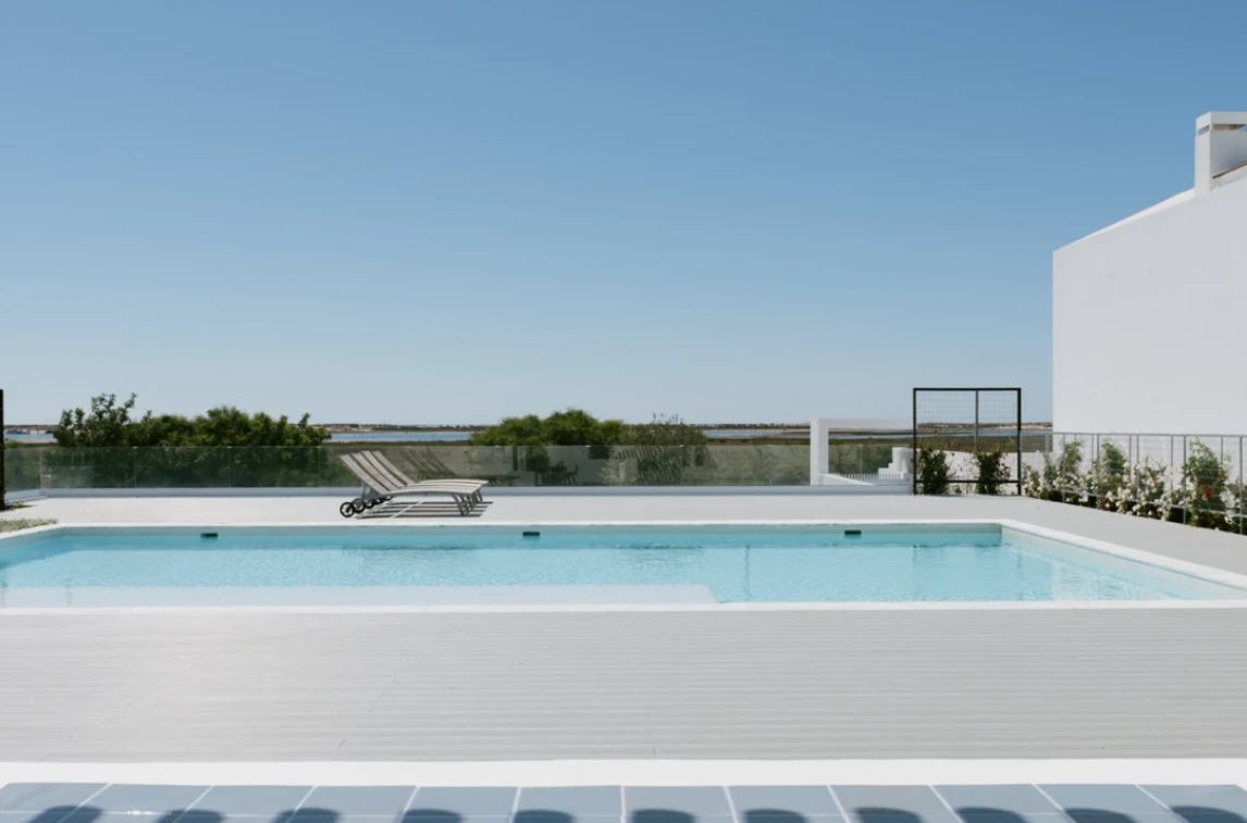 Diseñado por Saraiva + Associados, Casas de Sal consta de solo 11 villas, distribuidas en dos parcelas residenciales. Una tercera parcela está dedicada a zonas comunes, con una piscina con vistas panorámicas a la Ría Formosa, áreas de descanso y aparcamiento.
