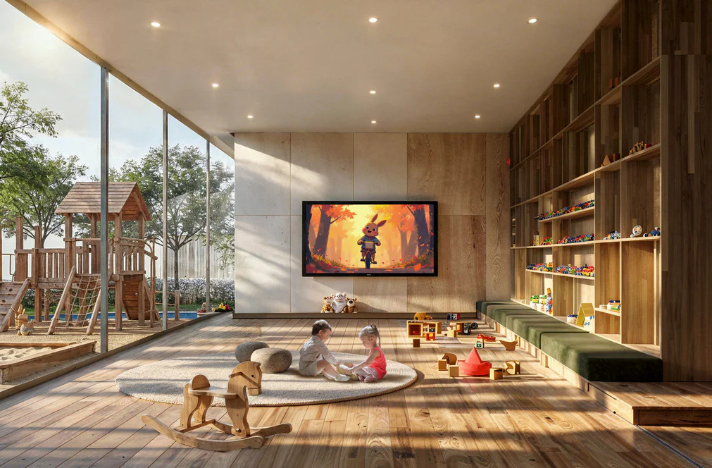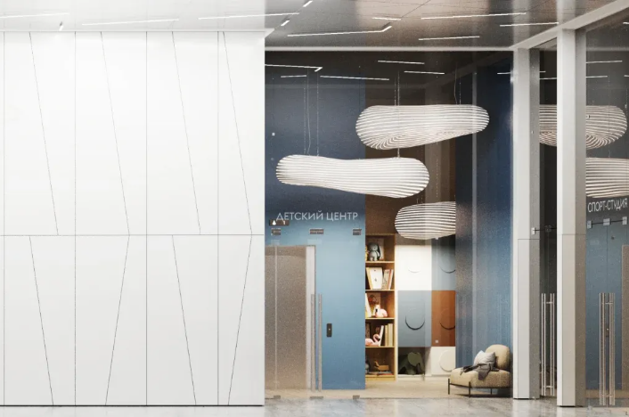 El complejo incluye infraestructura interna para los residentes. En la parte del podio del edificio se planifican espacios públicos y servicios orientados al confort de la vida cotidiana. También se prevé un aparcamiento subterráneo para los vehículos de los residentes. El territorio circundante incluye zonas ajardinadas de descanso, espacios para caminar y áreas para actividades recreativas.