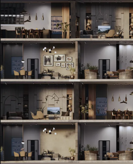 El proyecto presenta apartamentos de diferentes formatos, lo que permite elegir una vivienda adecuada para distintos estilos de vida. Las distribuciones funcionales incluyen amplias cocinas-salón, dormitorios principales y varios baños. En los pisos superiores se encuentran áticos y residencias con mayor altura de techos y espacios habitables ampliados.