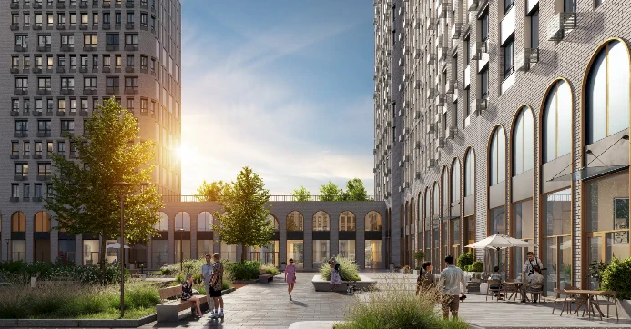 Los residentes disfrutan de un patio ajardinado de 5,000 m² con área de juegos, zonas de entrenamiento, muro de escalada, anfiteatro y espacios para yoga. En las plantas bajas hay una galería comercial, cafeterías y panaderías, y cerca se ubican una escuela, un jardín infantil y un centro de negocios. El complejo cuenta con 1,489 apartamentos con diseños funcionales, vistas panorámicas y techos de hasta 3.25 metros. “Almirante” es la encarnación del confort moderno y del estilo urbano elegante.
