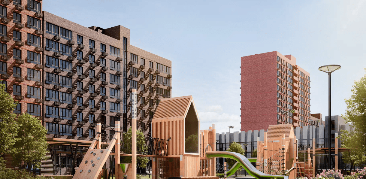 El desarrollo consta de 10 edificios de entre 1 y 17 plantas, con apartamentos de 20 a 73,4 m² entregados en estado de obra gruesa, permitiendo a los propietarios personalizar sus interiores.