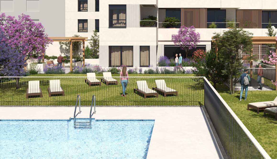 Residencial Pegasus es un proyecto residencial moderno y sostenible de Grupo Ibosa, ubicado en Los Berrocales (Fase III) — uno de los distritos con mayor dinamismo y orientación ecológica del sureste de Madrid.
