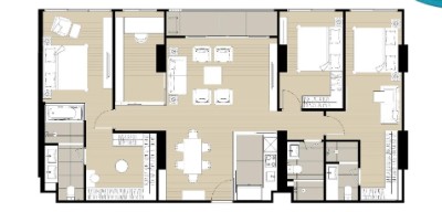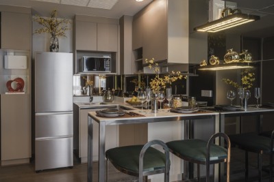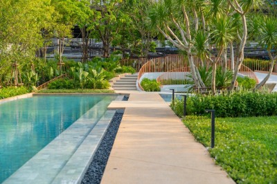 La infraestructura está diseñada con todo detalle: vestíbulos modernos, jardines verdes, piscina, gimnasio con entrenamientos virtuales, simulador de golf, club social, sky bar, espacio de coworking, biblioteca, zona lounge creativa, jardín japonés, así como saunas y baños de vapor para relajarse después de un día intenso. Su ubicación, a solo 450 metros de la estación BTS Thong Lor, garantiza un acceso rápido a los centros de negocios, culturales y de entretenimiento de la ciudad.
