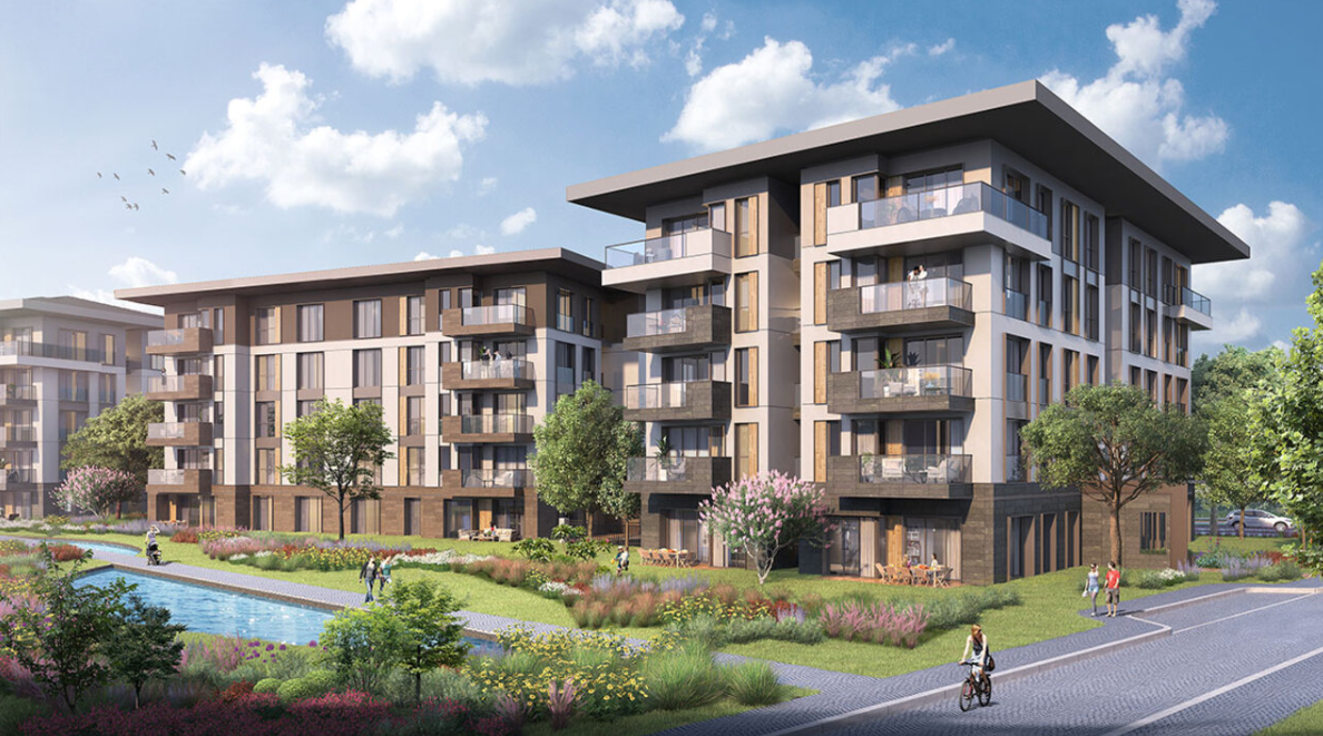 El proyecto arquitectónico incluye edificios de diferentes alturas, de 6 a 10 pisos, diseñados con principios de sostenibilidad ecológica. El complejo consta de seis bloques, que ofrecen 160 apartamentos y dúplex exclusivos con diversas distribuciones, desde 2+1 hasta 5+1. Los apartamentos están equipados con materiales de alta calidad, como mármol, y sistemas de ventilación individuales.