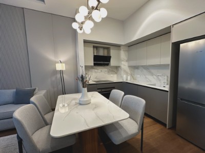 Todos los apartamentos se alquilan con acabados de alta calidad, equipados con muebles de cocina y los accesorios sanitarios necesarios en los baños. La superficie total de construcción es de 4.757 m², distribuida en dos bloques de 4 y 7 plantas, que incluyen 133 apartamentos y 6 locales comerciales.