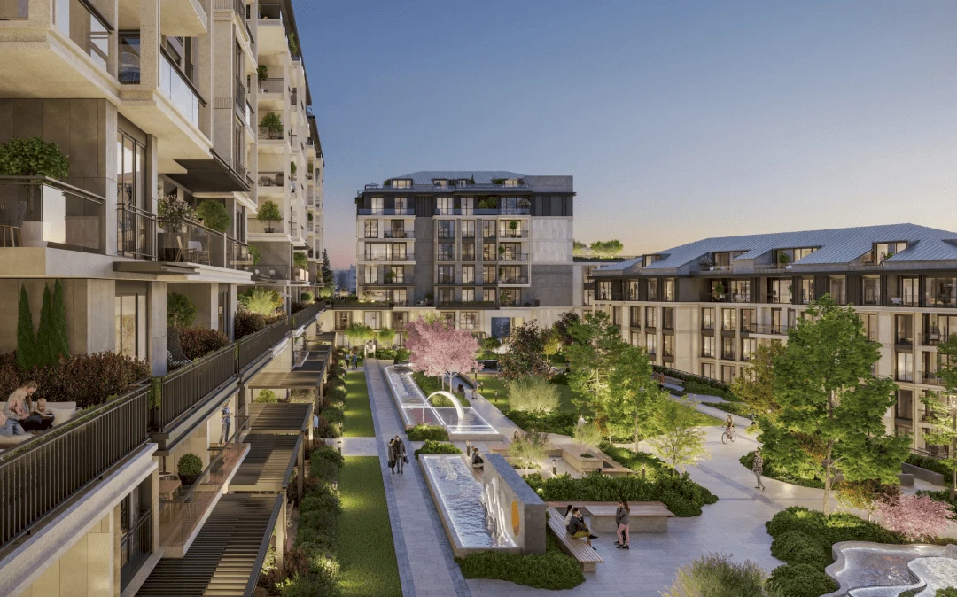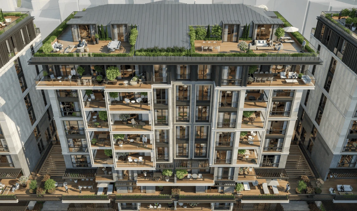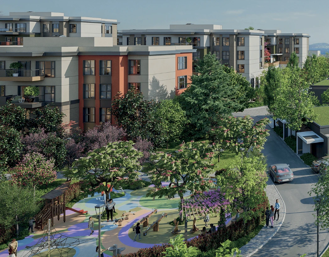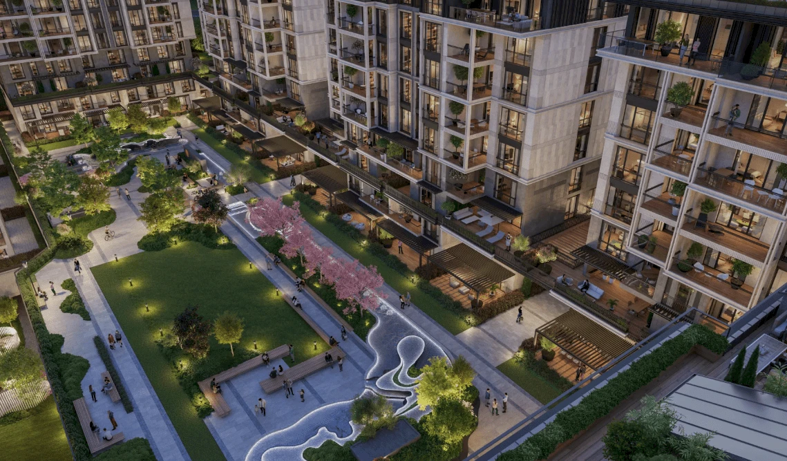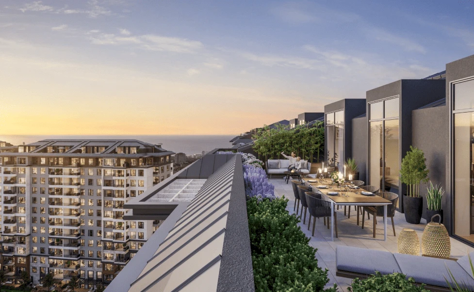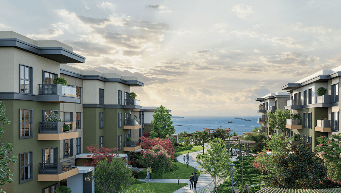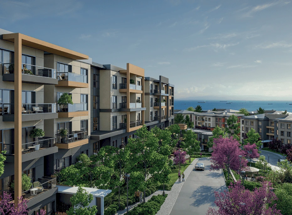 El proyecto ofrece la oportunidad de vivir cómodamente en una comunidad que combina estándares de lujo, belleza y calidad, reflejados en sus edificios con fachadas vibrantes, terrazas brillantes con impresionantes vistas a las Islas Príncipe, amplias áreas verdes adornadas con árboles y flores, y diversas comodidades.