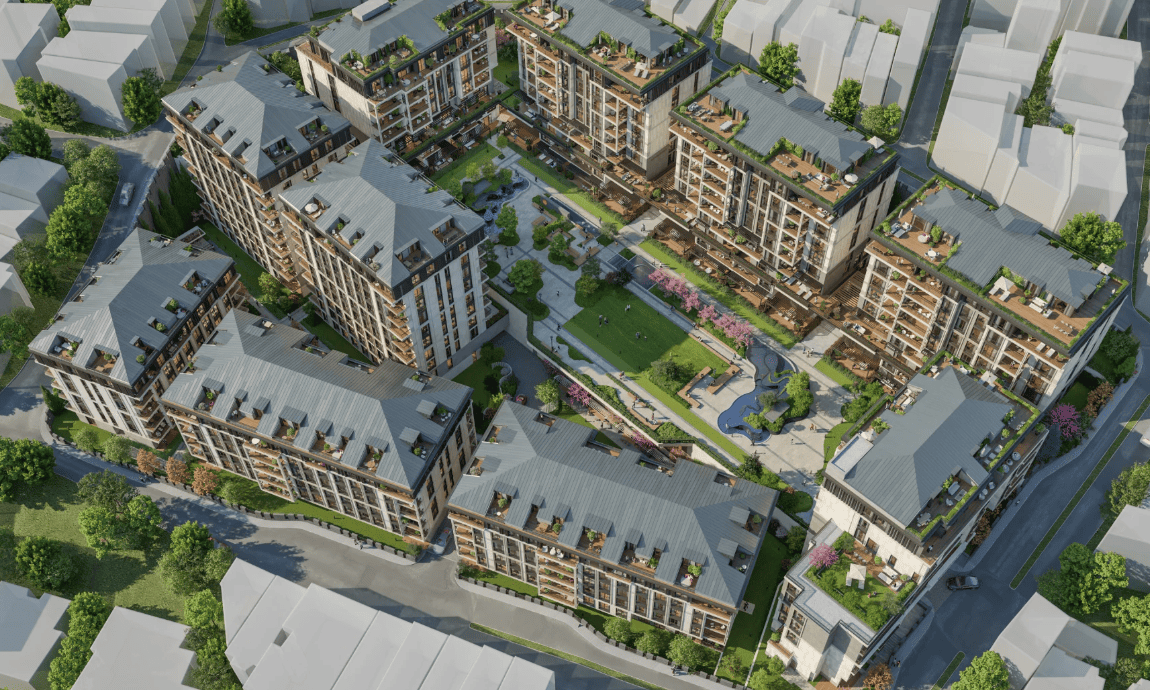El proyecto se encuentra en el distrito de Ispartakule, convenientemente situado entre los distritos de Avcılar y Başakşehir en el lado europeo de Estambul. Su ubicación estratégica permite un fácil acceso a todas las partes de la ciudad gracias a su proximidad a las principales rutas de transporte, como la autopista TEM y la autopista Norte de Mármara. La zona está rodeada por una infraestructura desarrollada, con escuelas, grandes centros comerciales, hospitales y varias universidades, lo que la convierte en un lugar ideal para vivir y trabajar.