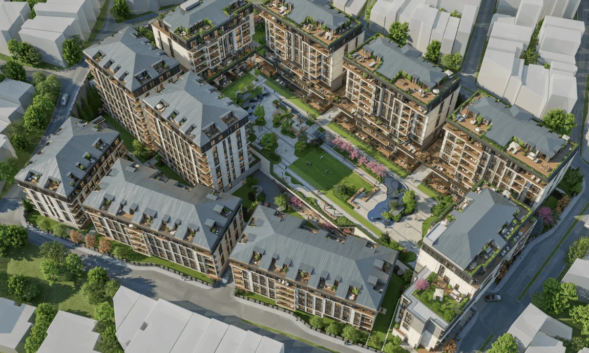 Kosuyolu Koru Evleri es uno de los proyectos más destacados creados por la colaboración de Tasyapi Insaat y Selcuklu Insaat, ubicado en el distrito de Altunizade Üsküdar. Este complejo residencial consta de 196 unidades en un terreno de aproximadamente 30,000 metros cuadrados. La característica distintiva del proyecto es su armoniosa integración con el entorno verde, así como la presencia de senderos peatonales. El diseño exterior de los 13 edificios incorpora elementos de madera, lo que le da un encanto único al complejo.