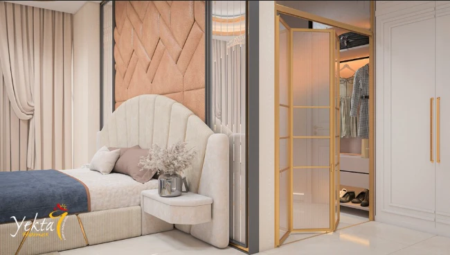 La arquitectura de Yekta Sungate Residence refleja el estilo mediterráneo contemporáneo: líneas limpias, ventanales amplios y una iluminación suave que aporta ligereza y elegancia.